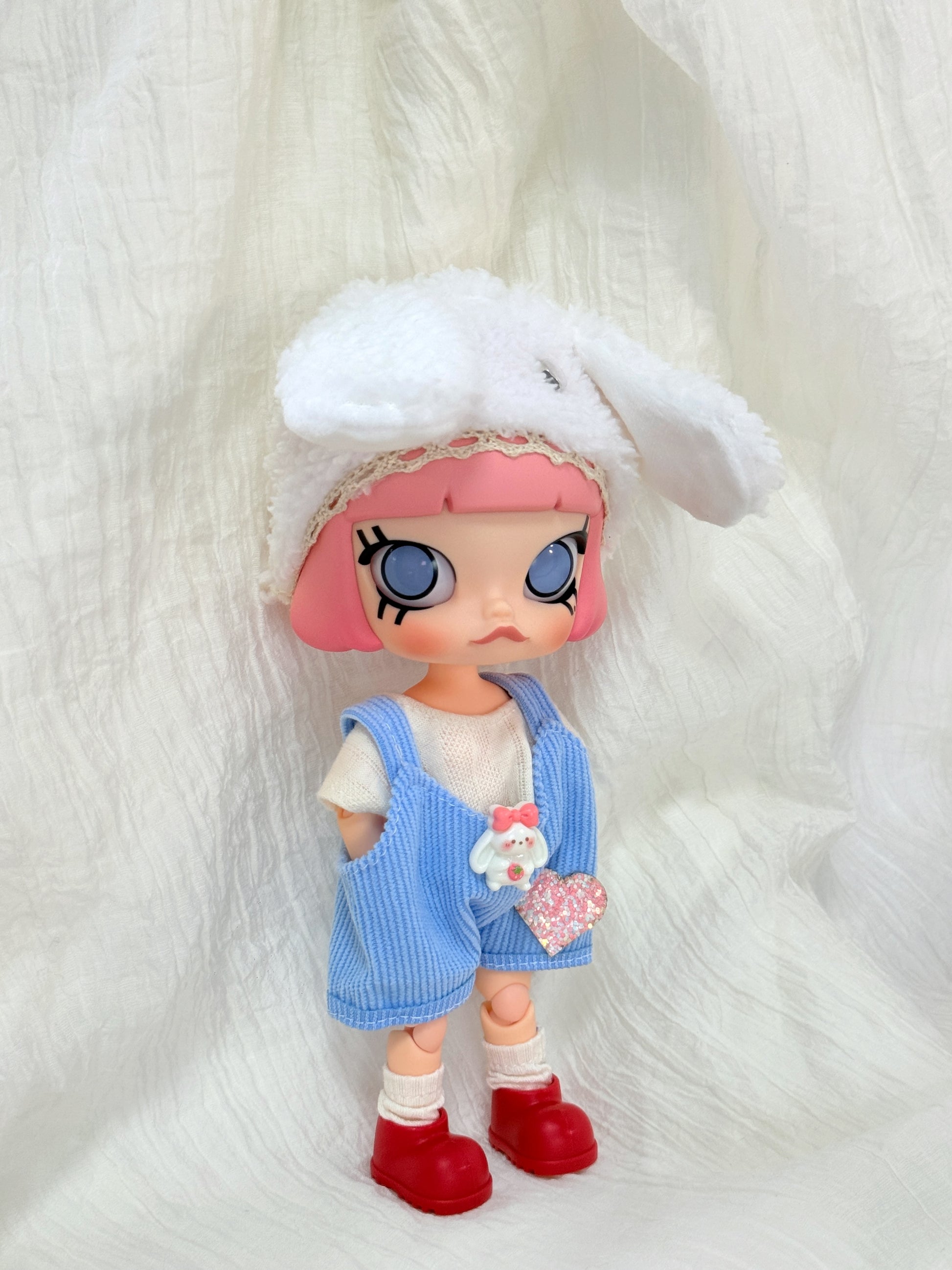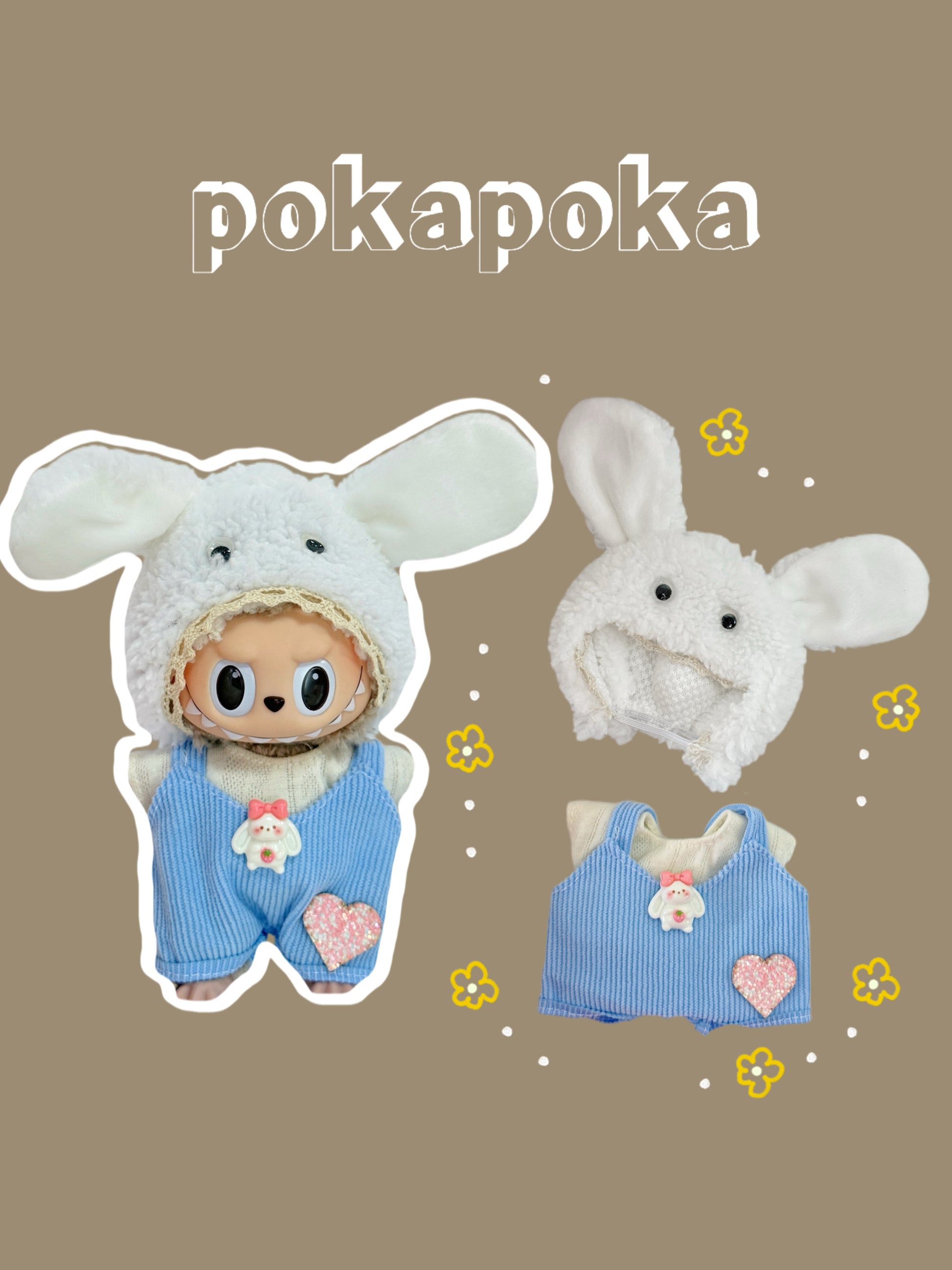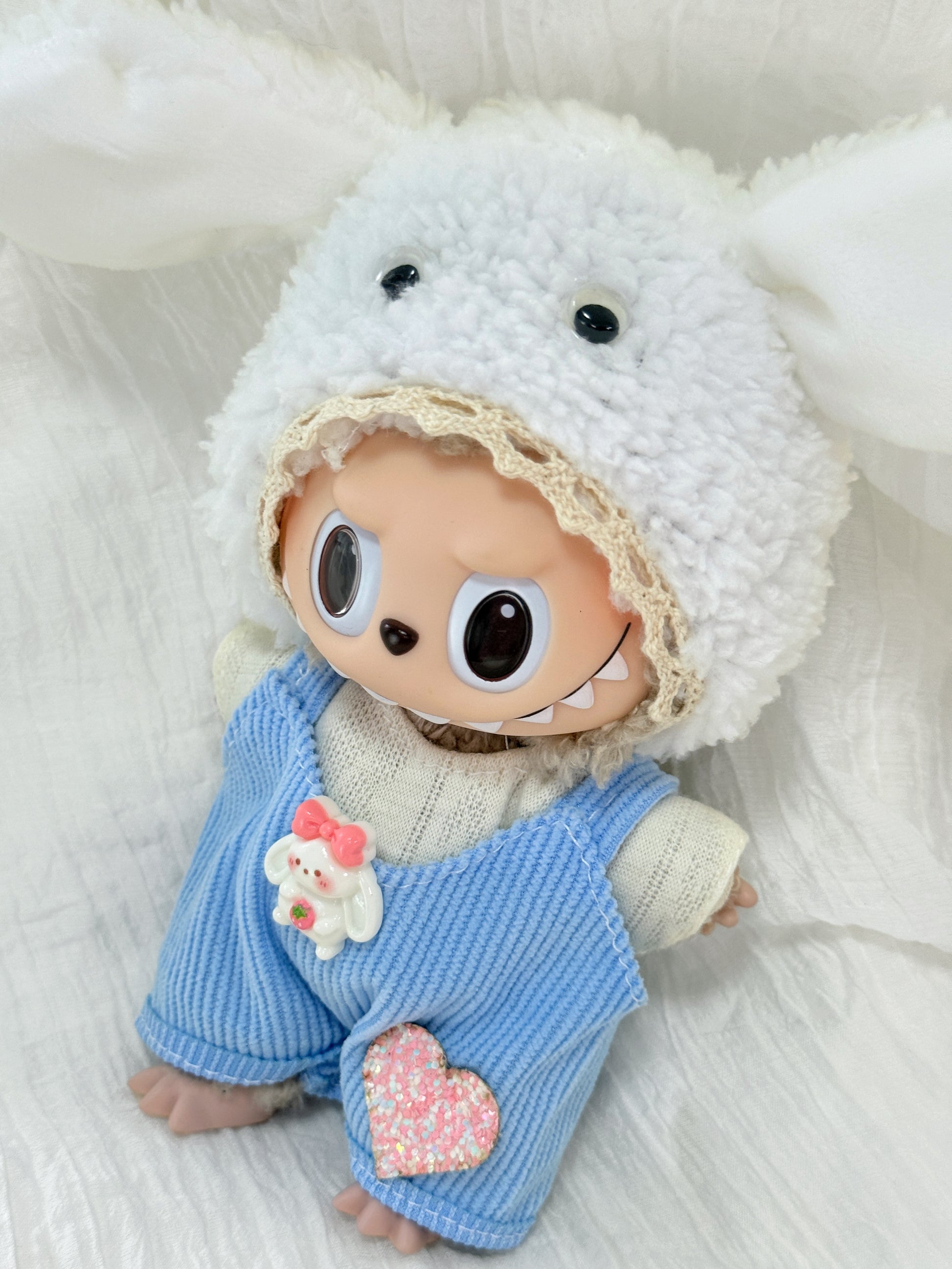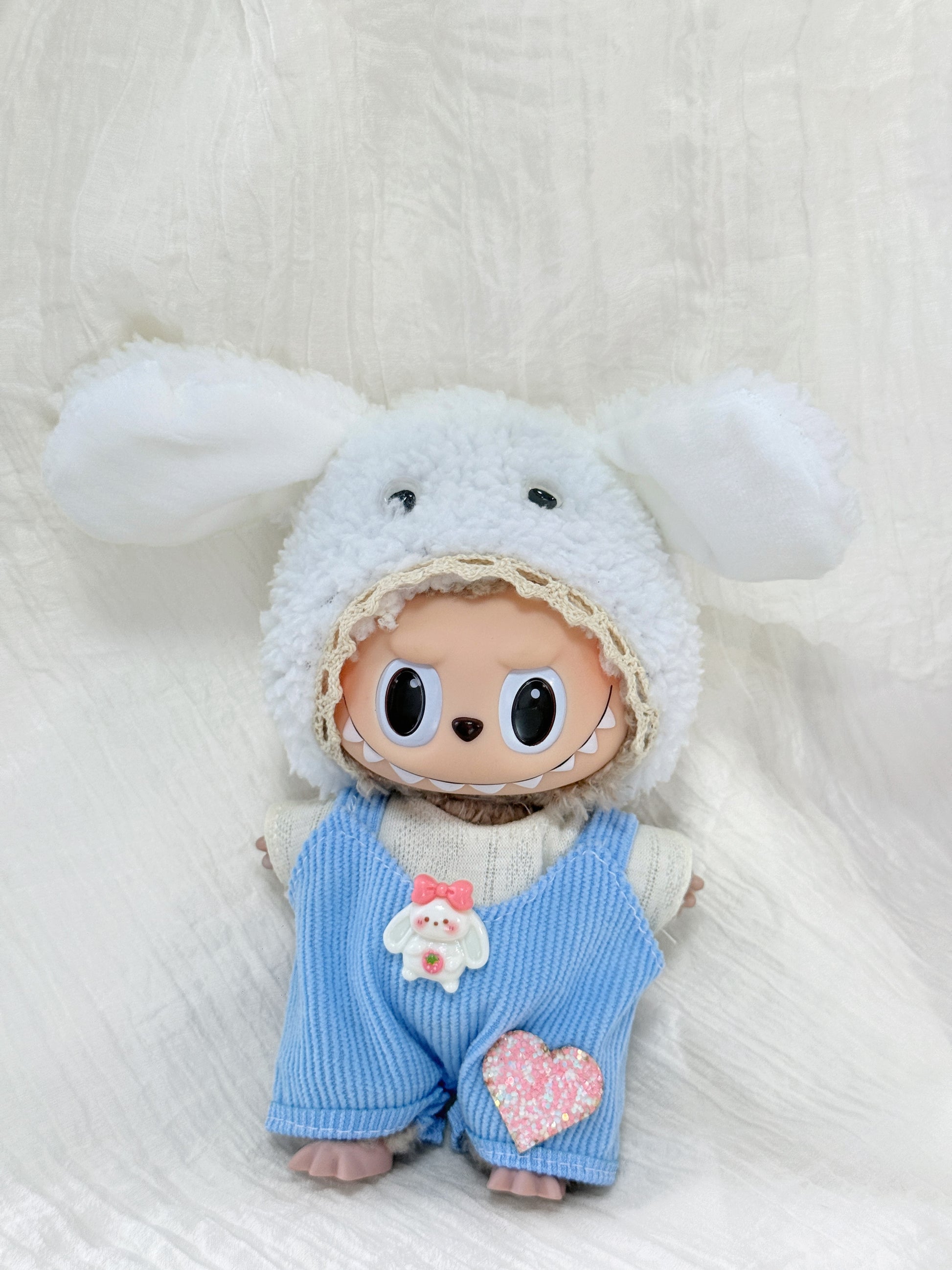 Labubu Clothes – Bunny Ears Hoodie & Blue Overalls Set (Handmade Cute Look)