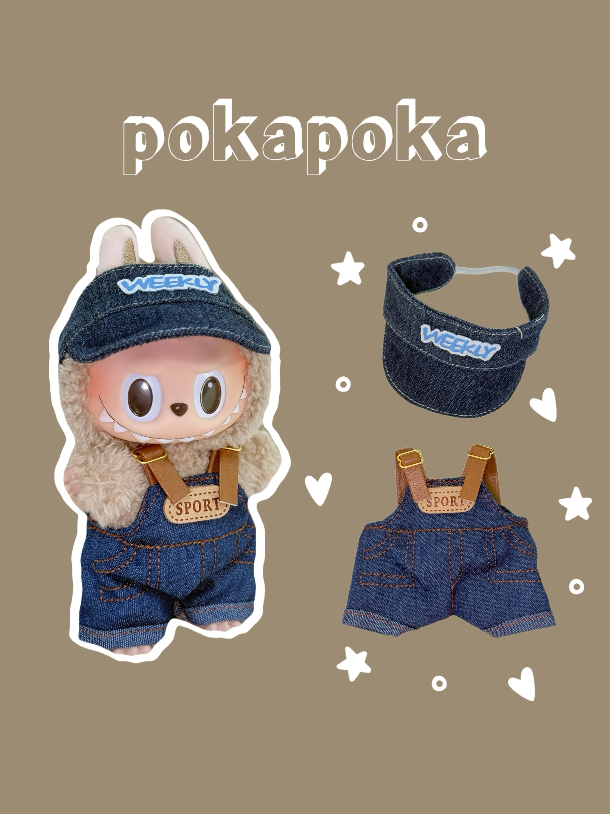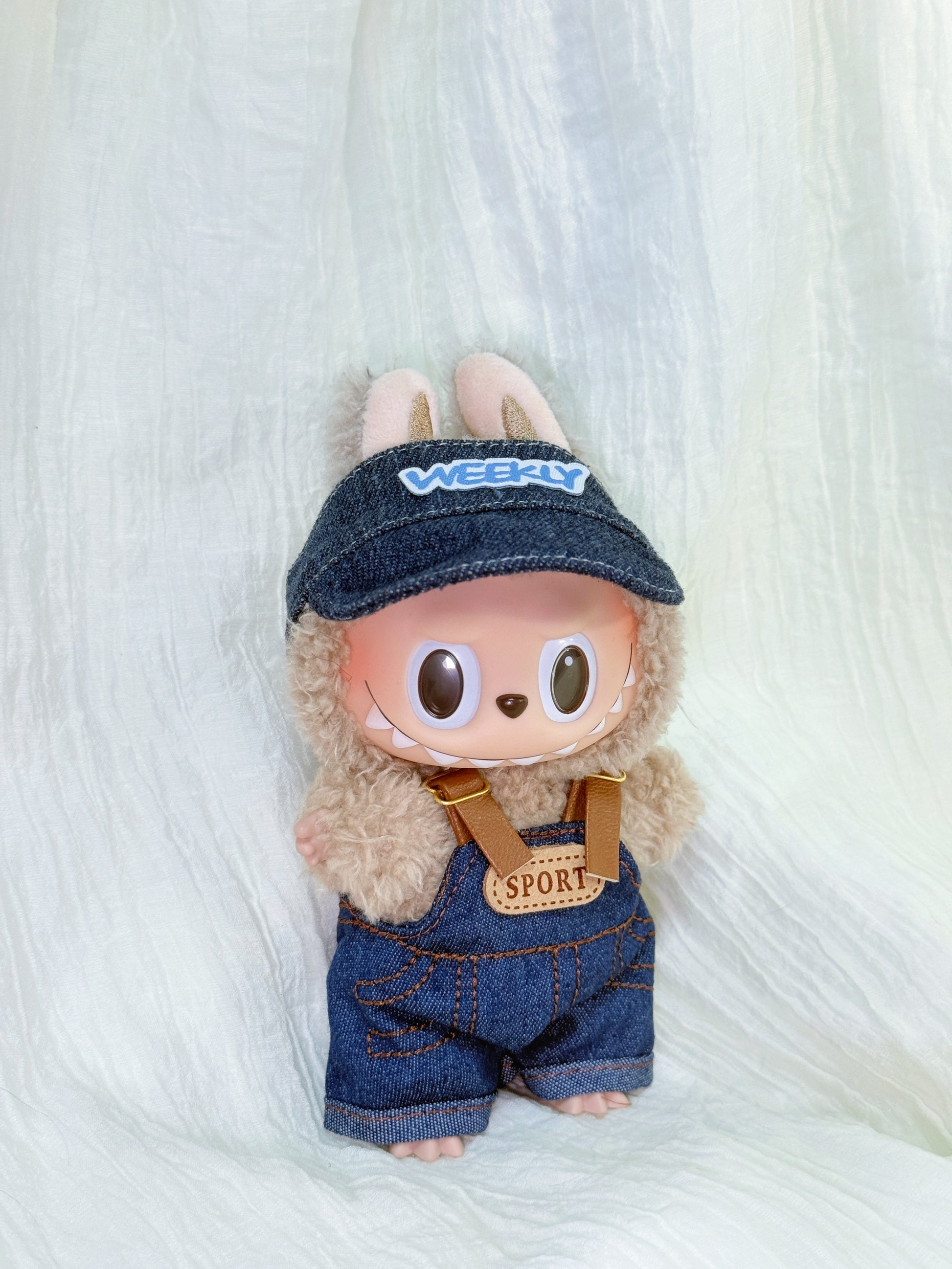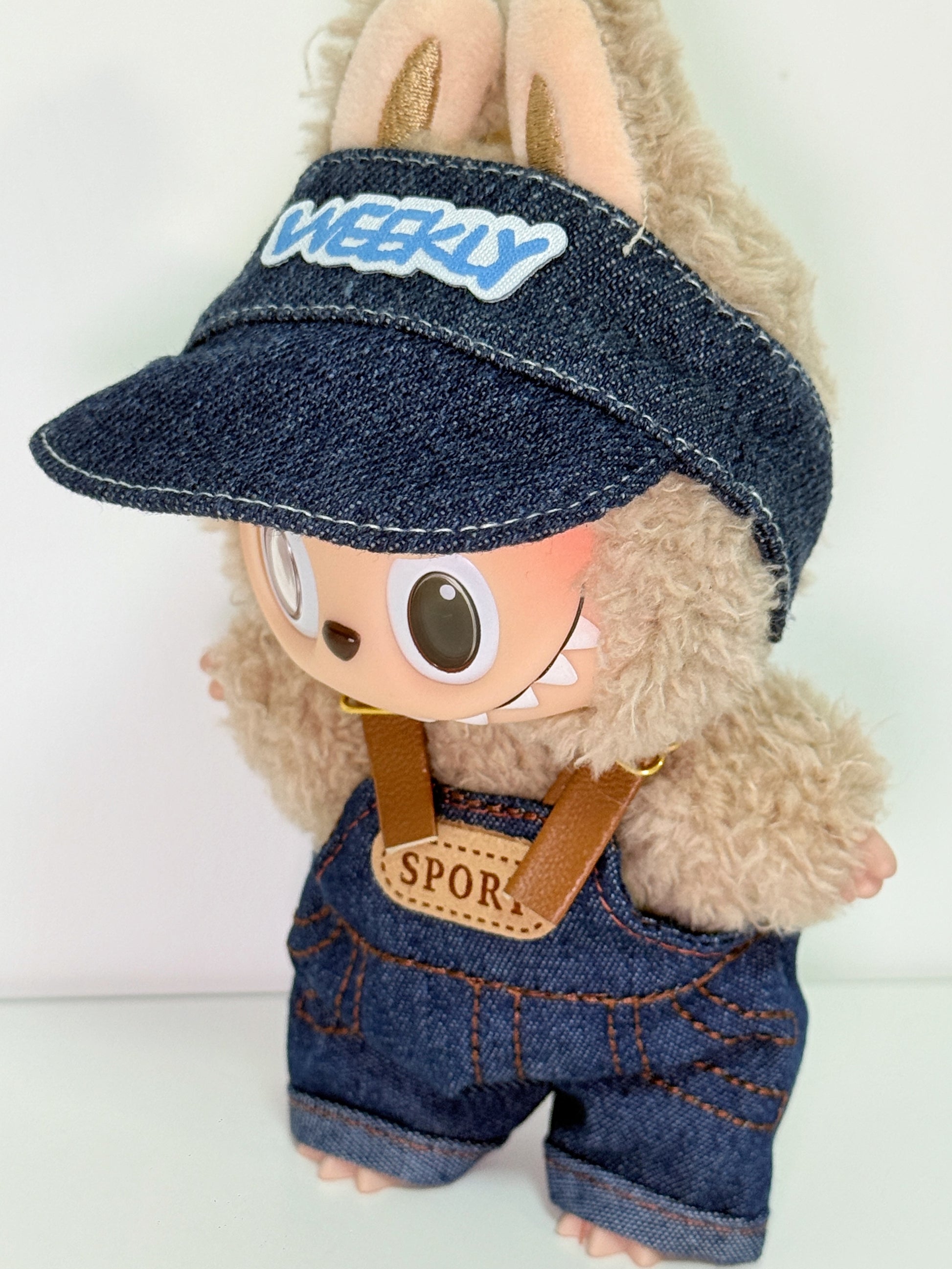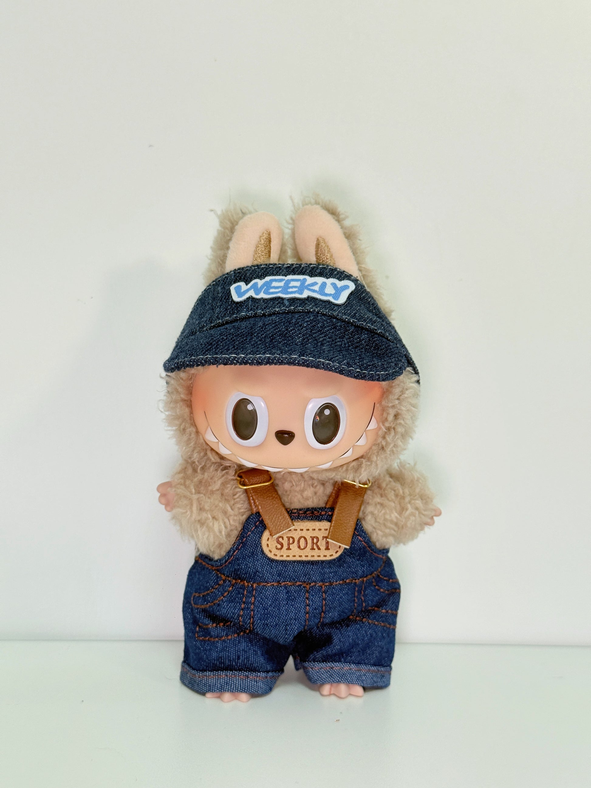 Labubu Clothes – Denim Overalls & Sporty Cap Set (Handmade Streetwear Look)