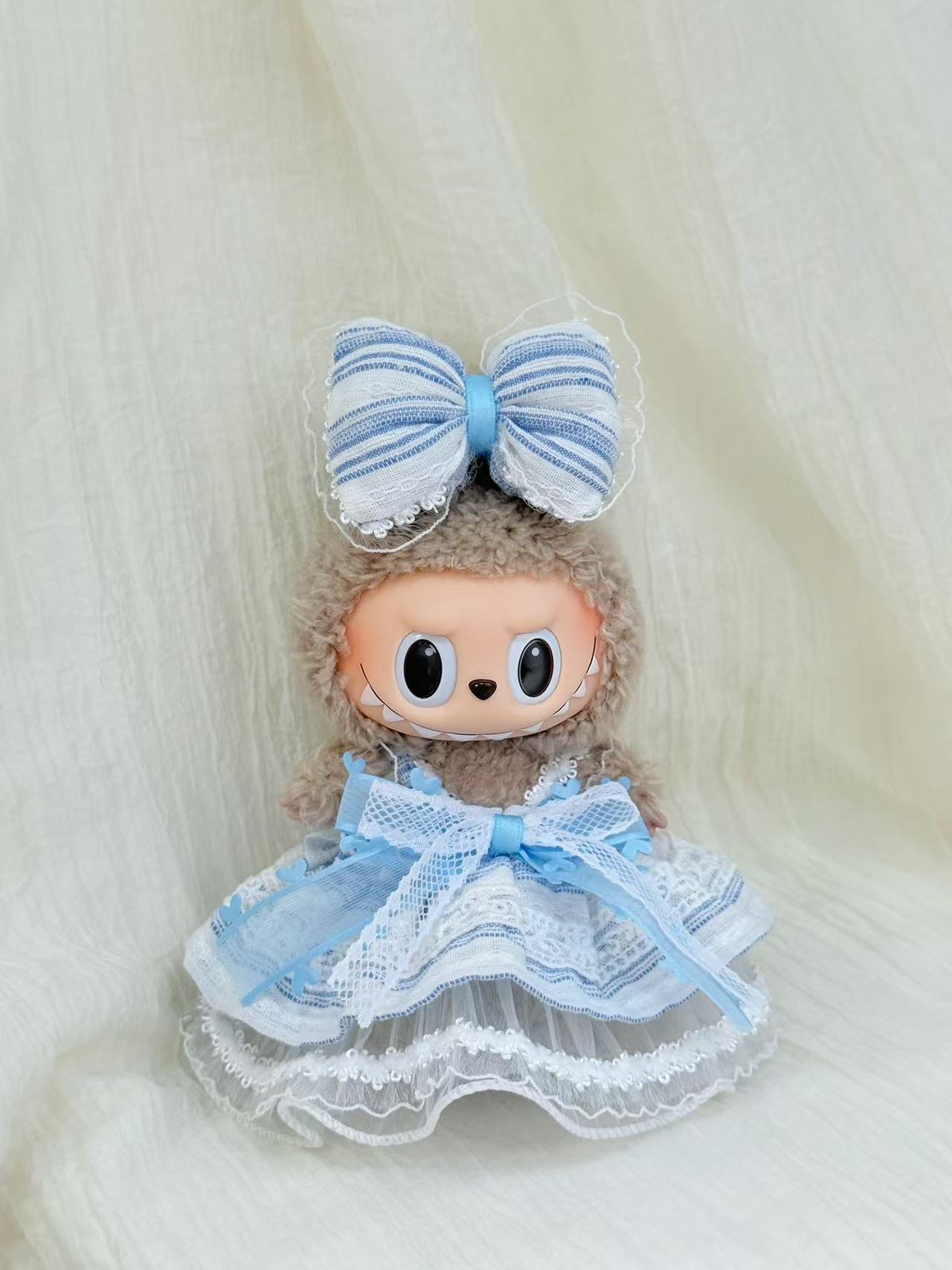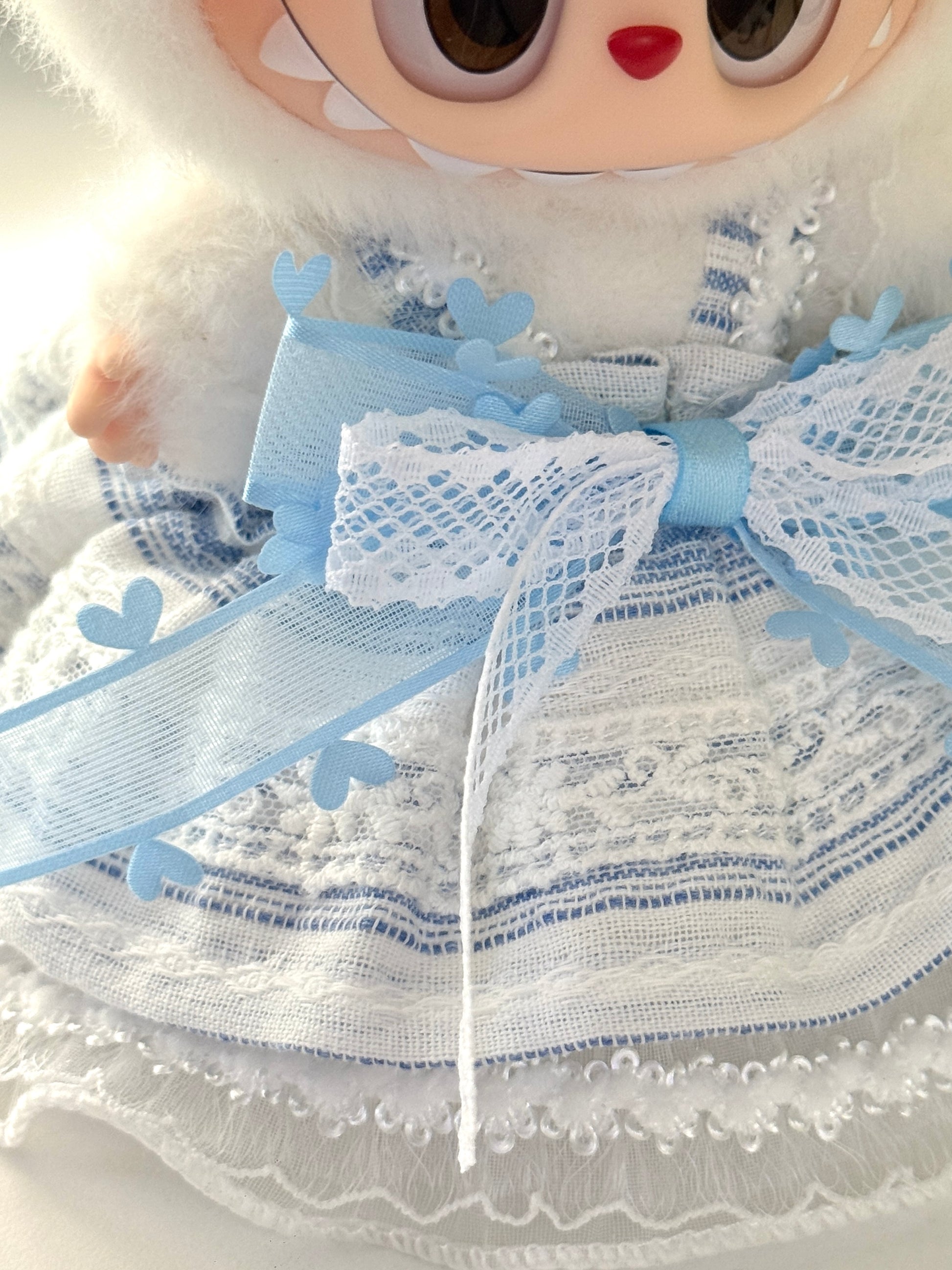 Labubu Clothes – Dreamy Blue Princess Dress Set with Big Bow (Handmade Fairy Look)