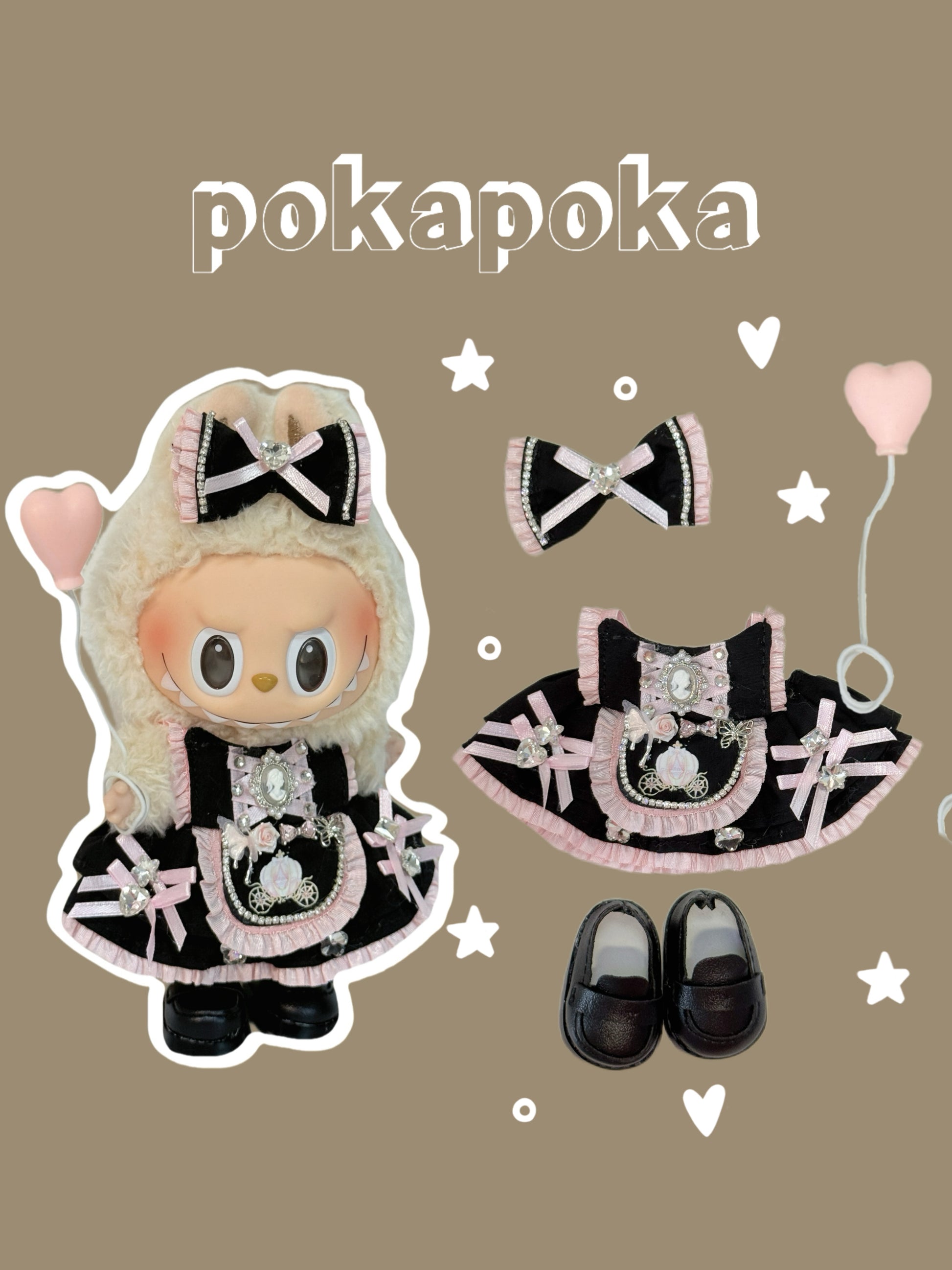 Labubu Clothes – Black & Pink Lolita Dress Set (Exclusive Special Edition, Handmade)