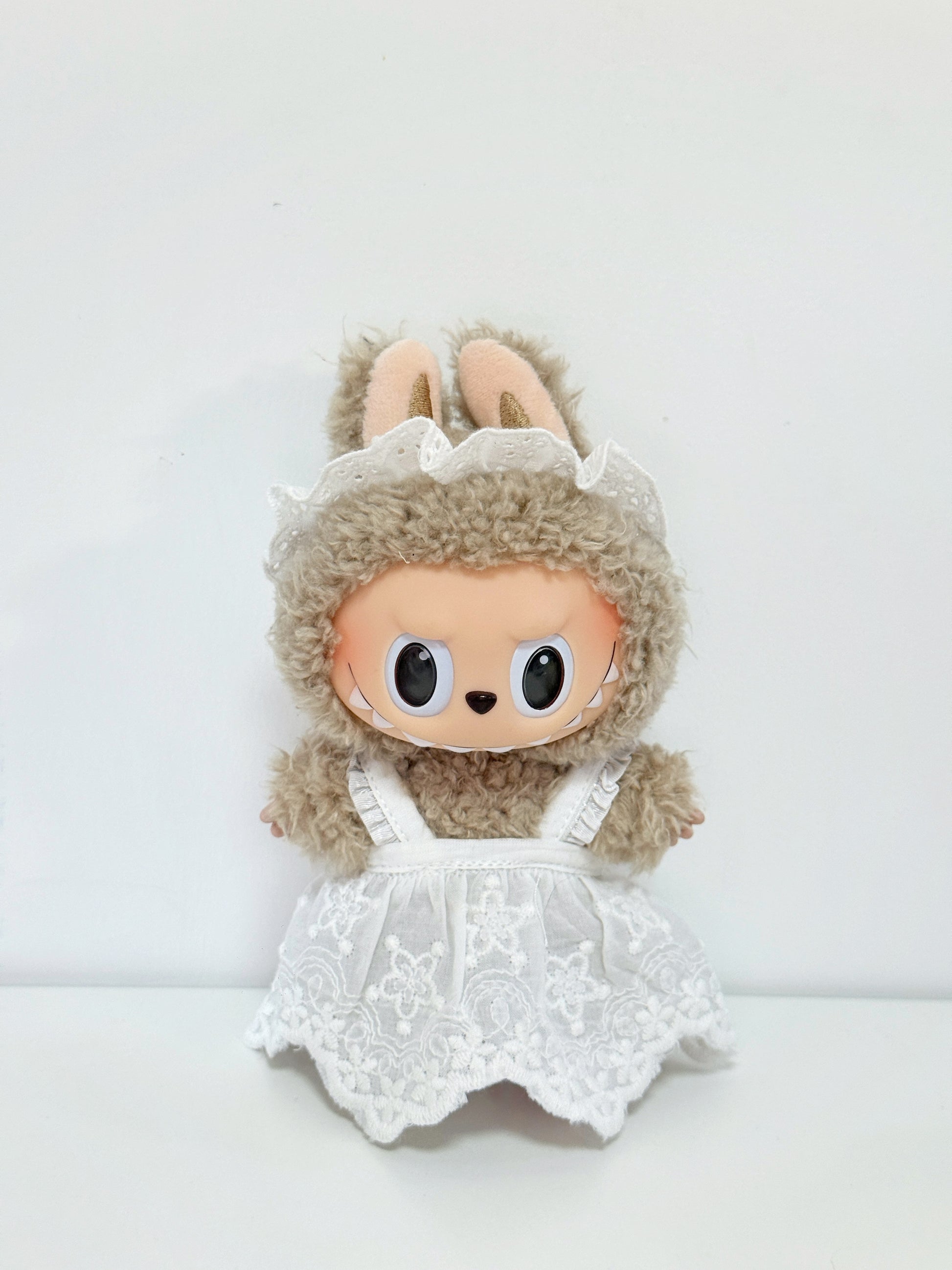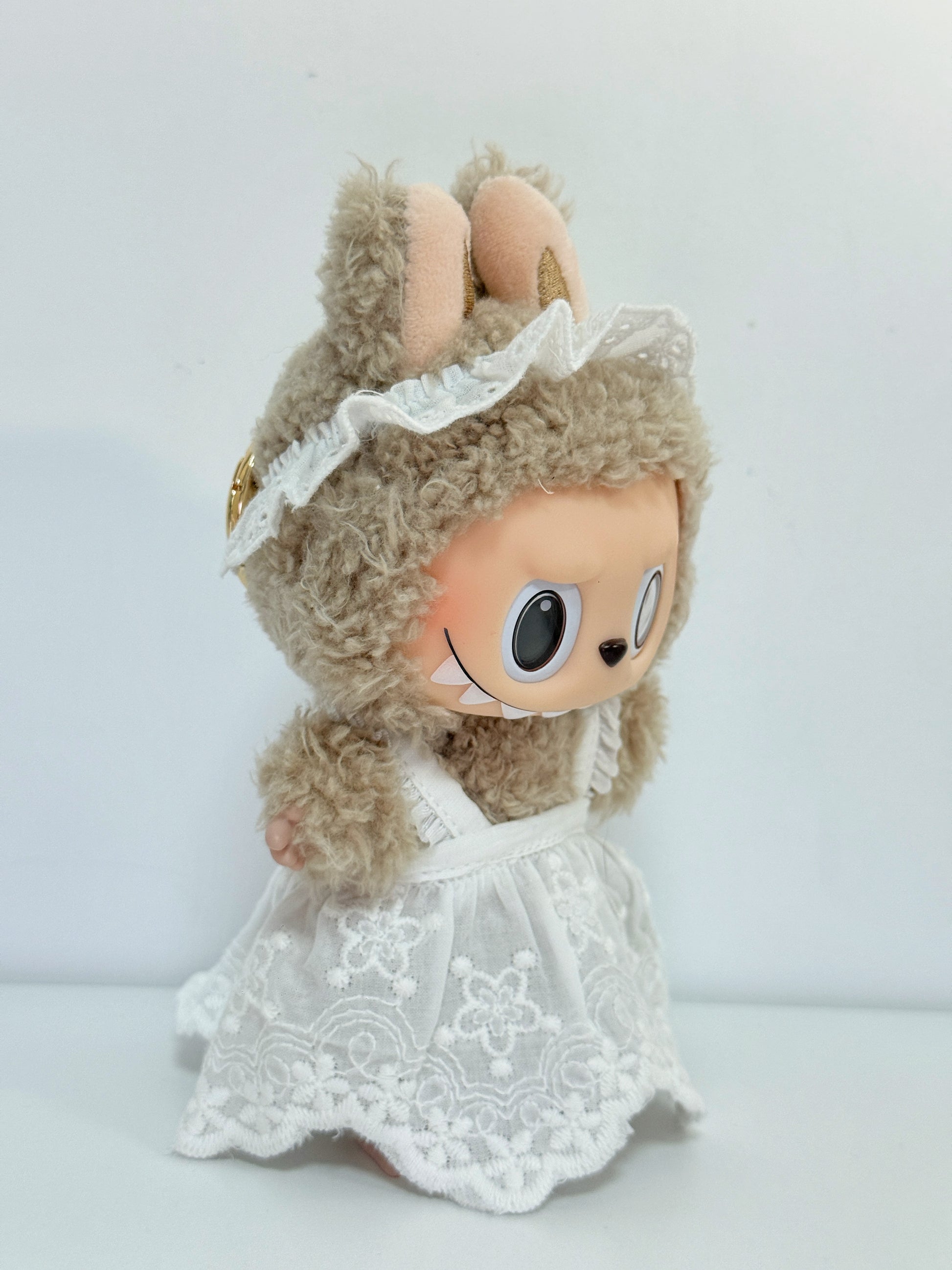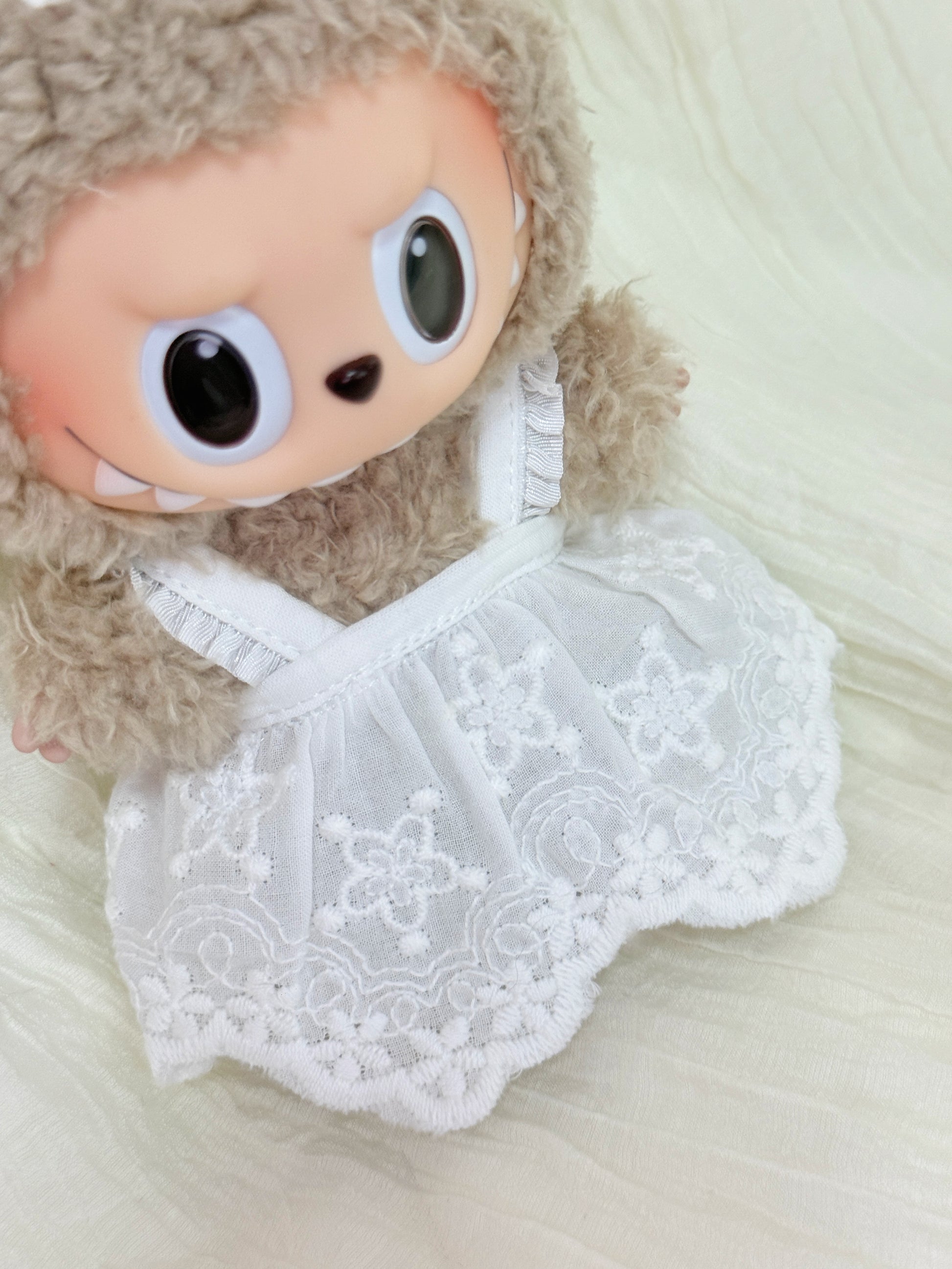 Labubu Clothes – White Embroidered Dress Set with Lace Collar (Handmade)